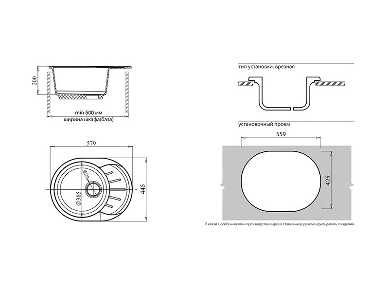 Мойка кухонная GranFest Серая Rondo R-580 L сер