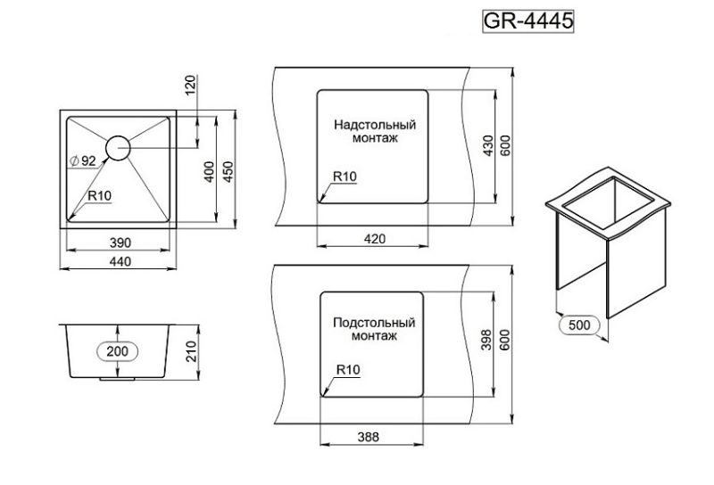 Мойка кухонная Granula 4445U, ГРАФИТ МАТОВЫЙ