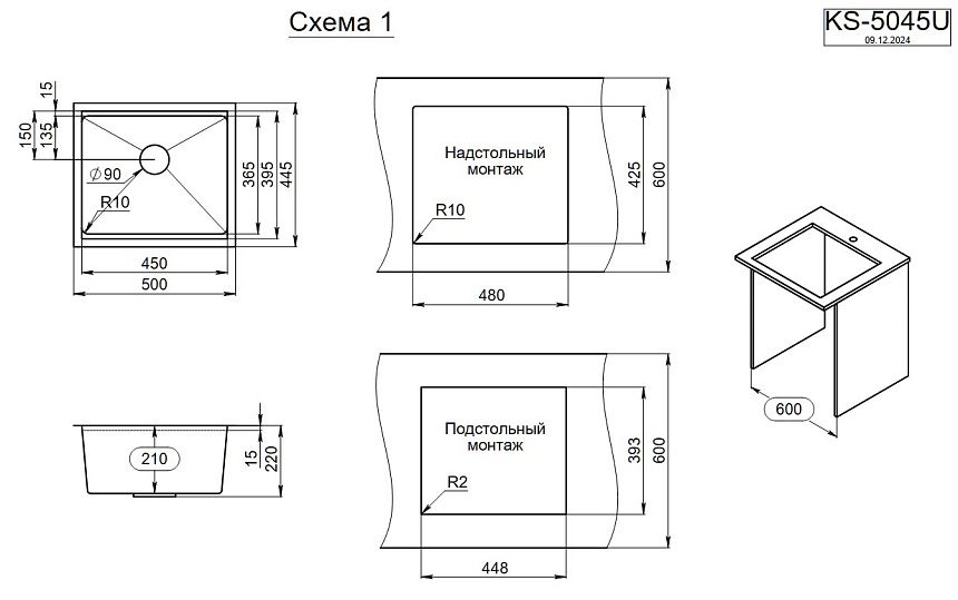 Монтаж:встраиваемая сверху