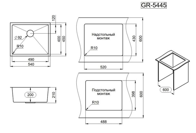 Мойка кухонная Granula 5445U, СТАЛЬ САТИН