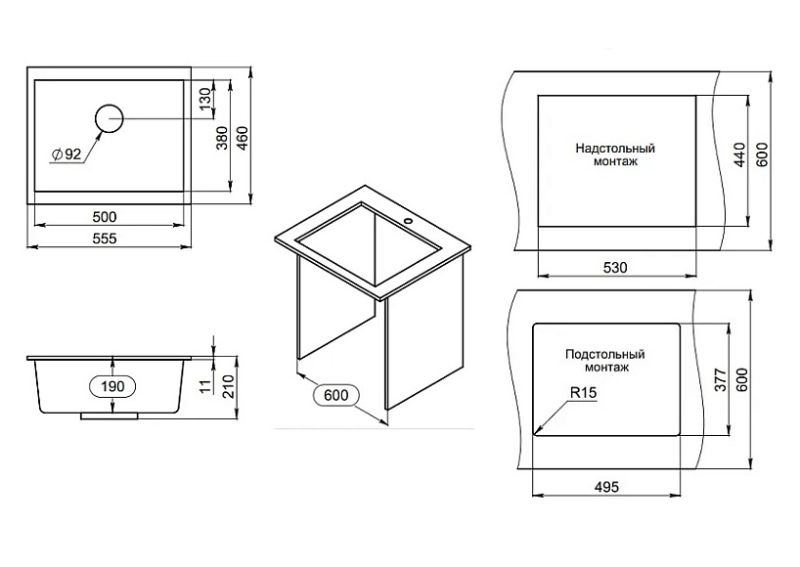 Монтаж:встраиваемая снизу