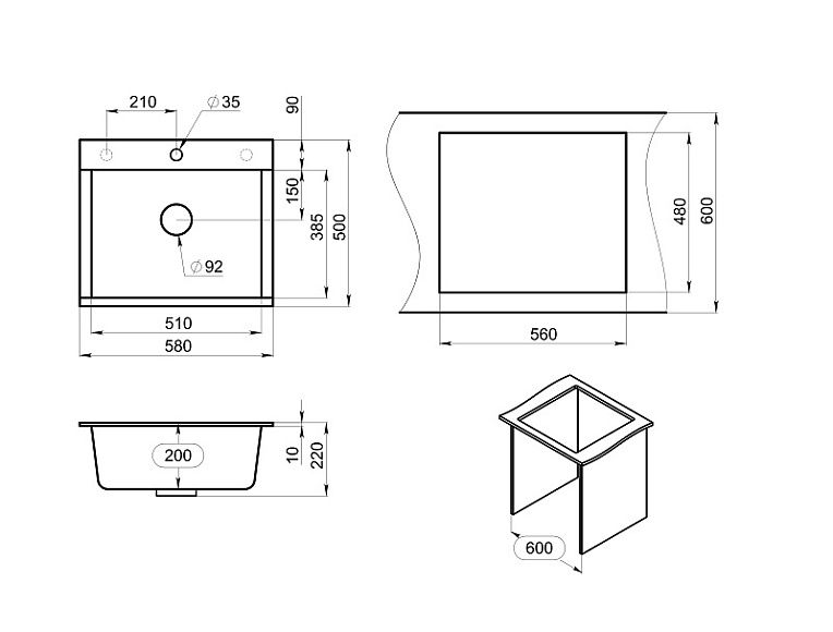 Мойка кухонная Granula 5804, ШВАРЦ