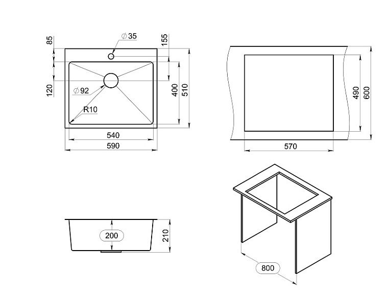 Мойка кухонная Granula 5951, ЗОЛОТО САТИН