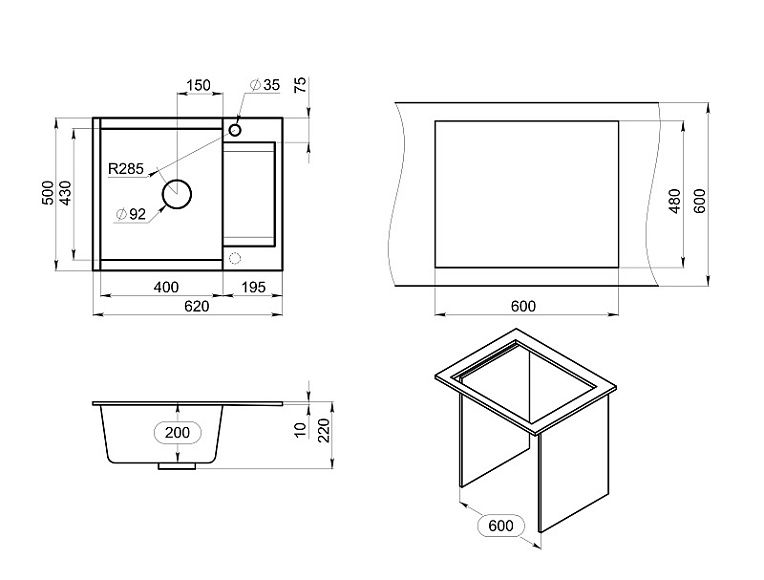 Сифон с отводом для бытовой техники, разделочная доска (ясень)
