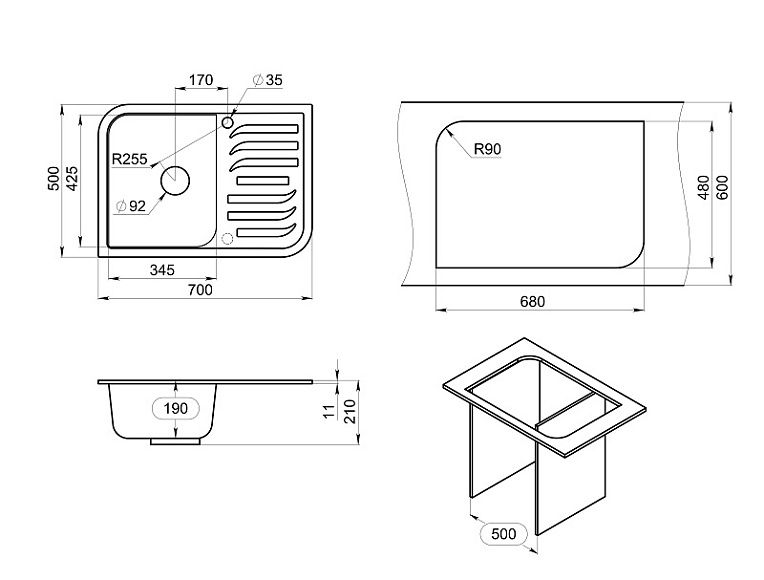 Сифон с отводом для бытовой техники, трафарет для монтажа