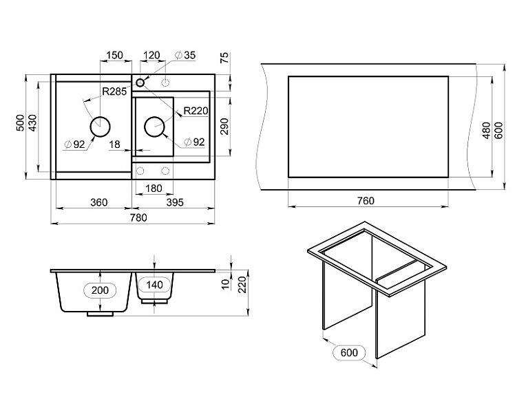 Сифон с отводом для бытовой техники, разделочная доска (ясень)