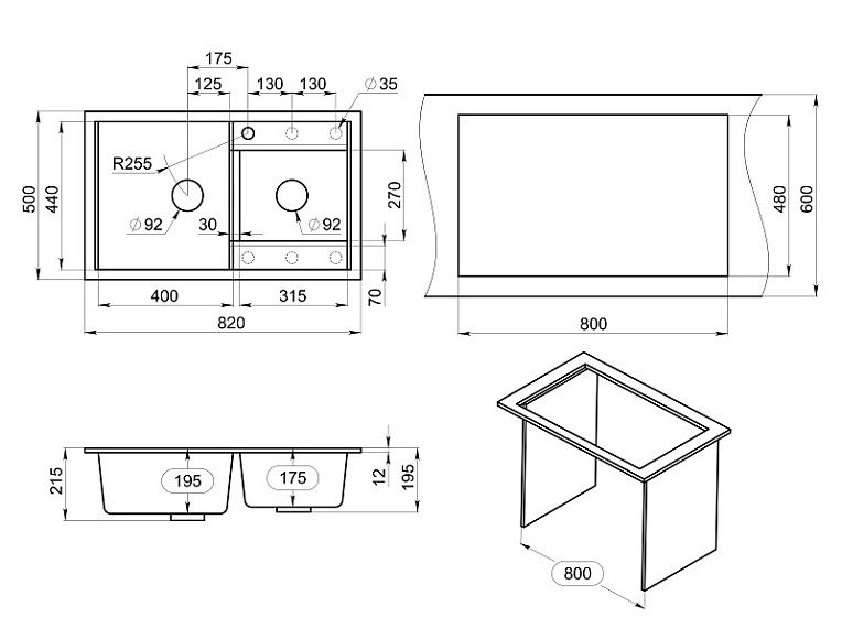Мойка кухонная Granula 8201, АЛЮМИНИУМ