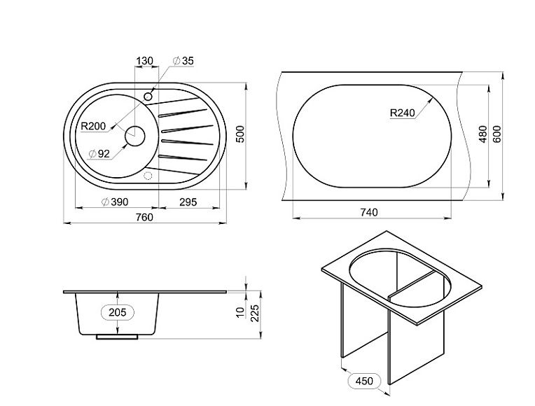 Мойка кухонная Granula Standart 7601, ГРАФИТ