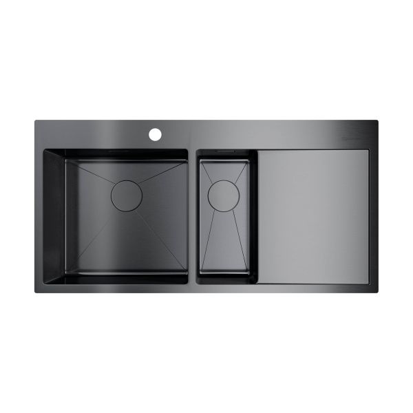 Мойка кухонная Omoikiri Akisame 100-2-GM-L нерж.сталь/вороненая сталь
