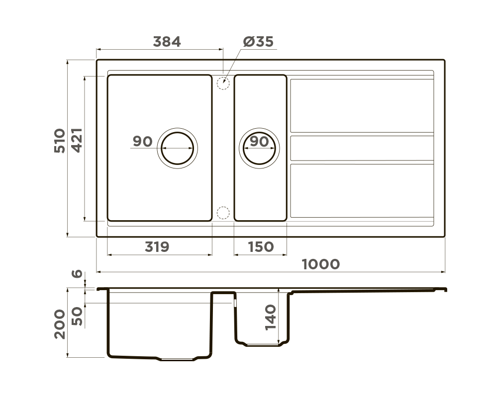 - Непористый материал ARTCERAMIC® по всей глубине способен отталкивать частицы грязи и воды, а специальное защитное покрытие делает мойку совершенно невосприимчивой к загрязнениям.