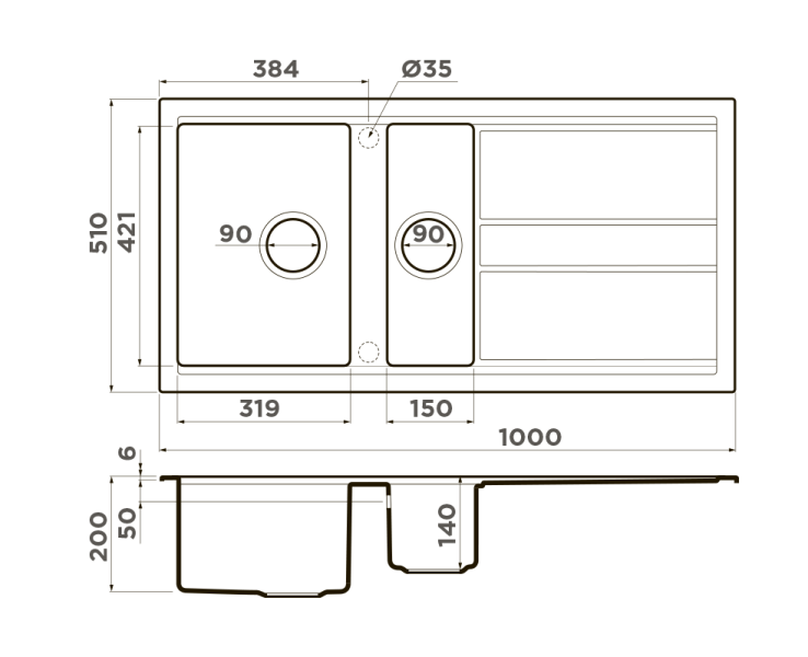 • Непористый материал ARTCERAMIC® по всей глубине способен отталкивать частицы грязи и воды, а специальное защитное покрытие делает мойку совершенно невосприимчивой к загрязнениям.