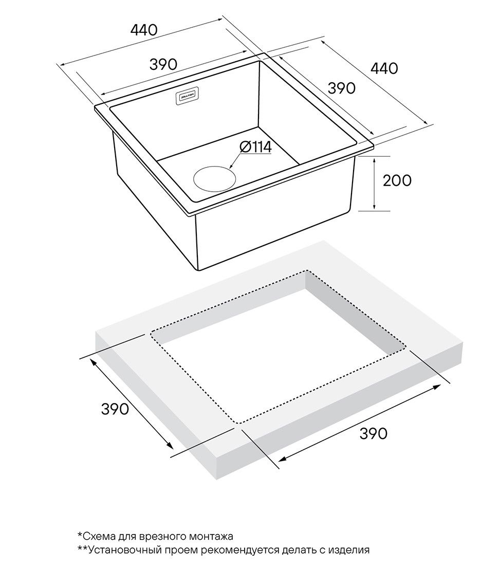 Мойка кухонная Paulmark Aller PM904444-BS брашированная нержавеющая сталь