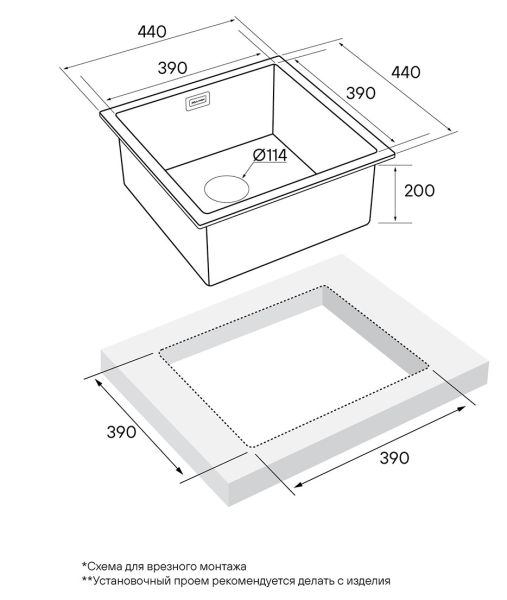 Монтаж:встраиваемая снизу