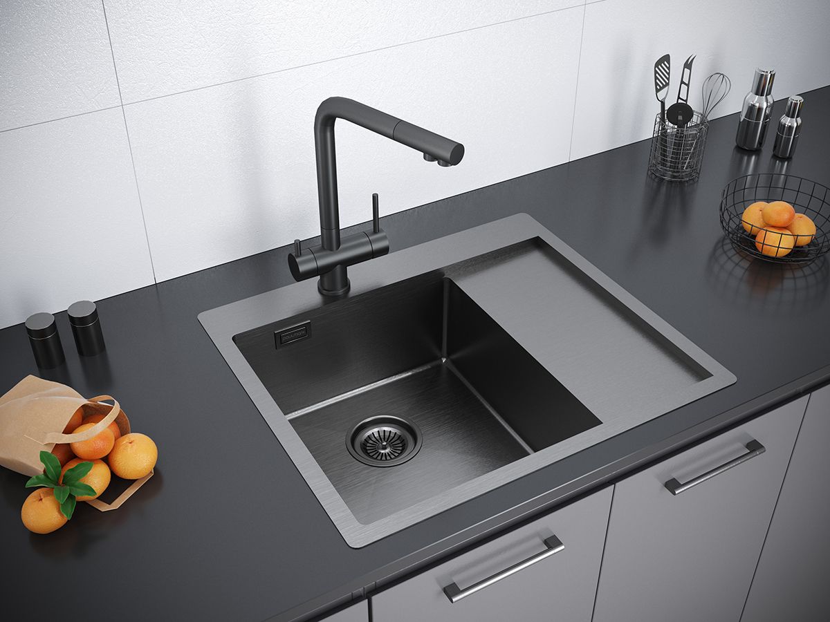 Мойка кухонная Paulmark Alster PM825951-GML левая воронёная сталь купить