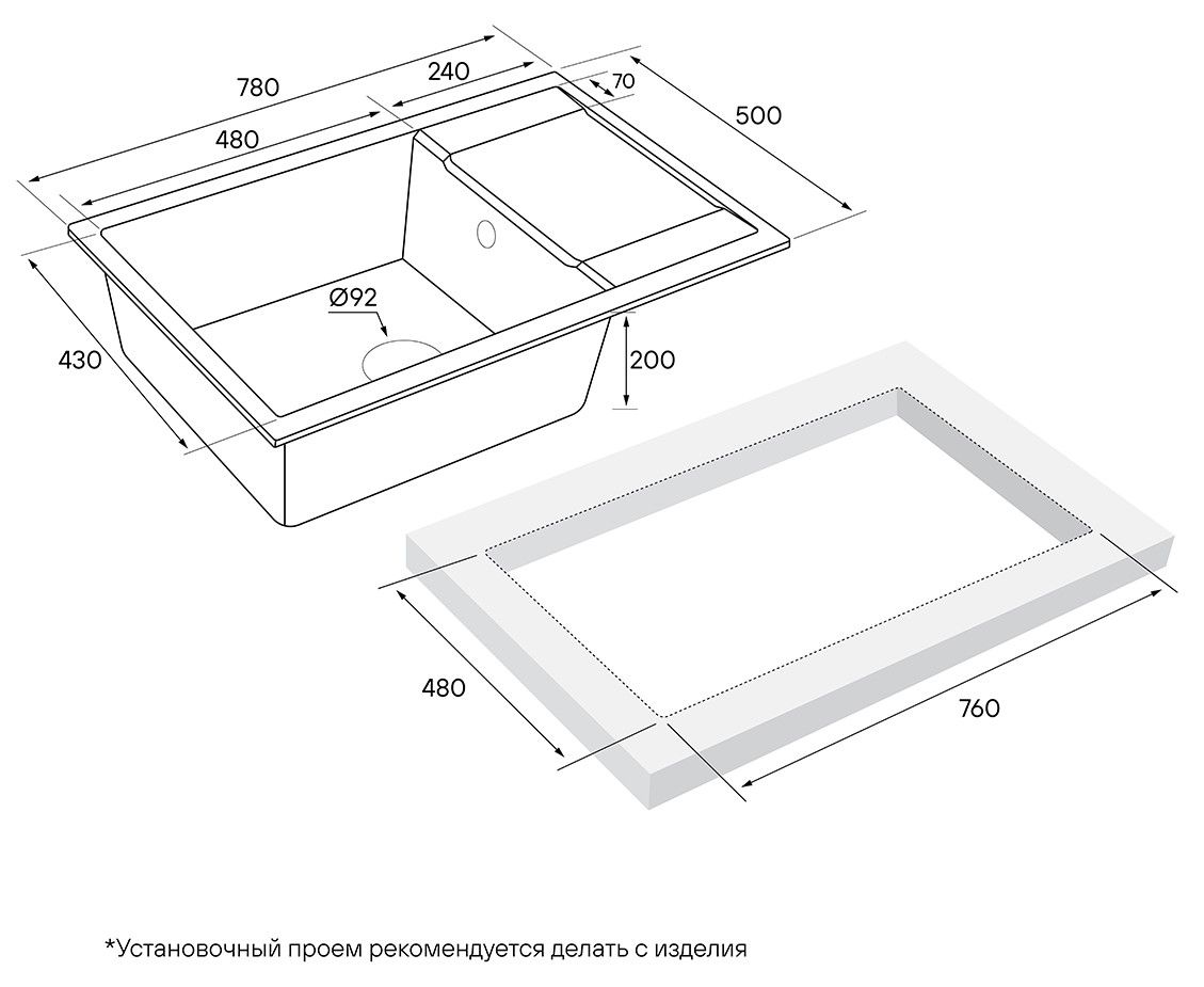 Материал мойки устойчив к механическим повреждениям, а также выдерживает температуру до 180 градусов.