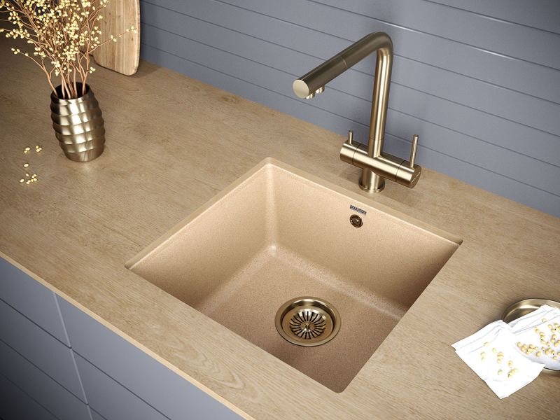 Материал мойки устойчив к механическим повреждениям, а также выдерживает температуру до 180 градусов.Однородная структура цвета