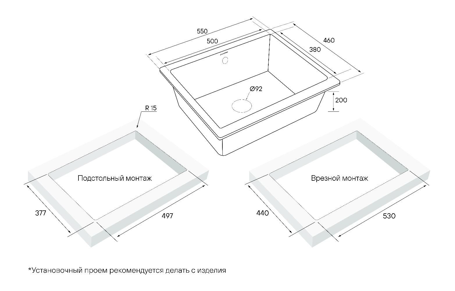 Материал мойки не нужно герметизировать, и, поскольку он не пористый, то он максимально устойчив к окрашиванию.Максимальный объём чаши