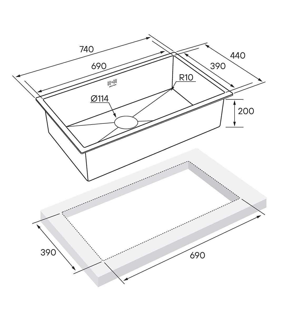 Мойка кухонная Paulmark Gerberg PM217444-BS брашированная нержавеющая сталь