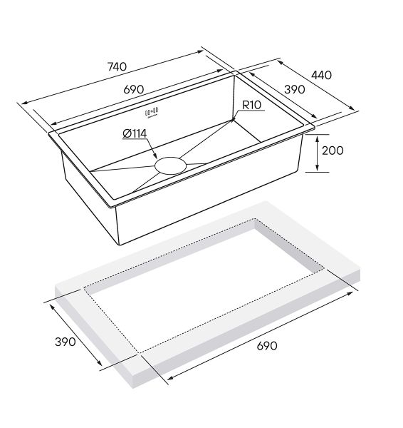 Монтаж:встраиваемая снизу