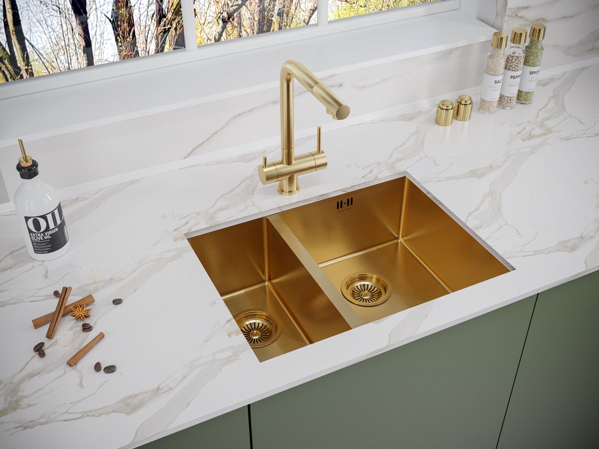 Мойка кухонная Paulmark Gerberg PM225944-BGR правая брашированное золото купить