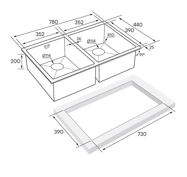Мойки в оттенке GM имеeт прочное PVD покрытие, которое нанесено на нержавеющую сталь. Оно особенно устойчиво к появлению царапин и истиранию, не содержит микротрещин и является экологически чистым.Имеет шумопоглощающее покрытие Stille® на внешней стороне чаши;