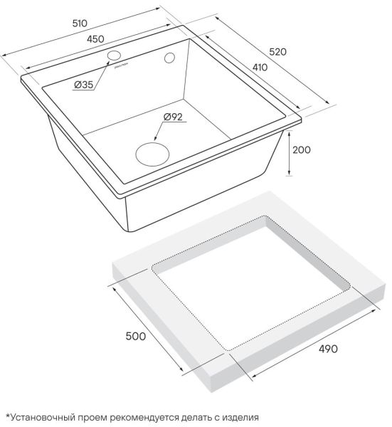 Мойка KANTE 50, изготовленная из искусственного гранита под брендовым названием IT-GRANIT, это: