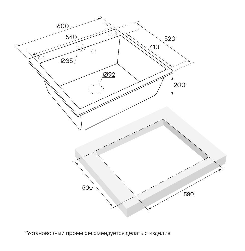Мойка для кухни, PM106052-WHСтильная и прочная мойка из искусственного гранита для создания комфортной рабочей зоны на вашей кухне.Мойка KANTE 60, изготовленная из искусственного гранита под брендовым названием IT-GRANIT, это: