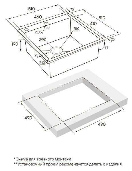 Мойка кухонная из нержавеющей стали, артикул PM775151-BSБортики мойки KRONER-EDGE имеют оригинальную форму боковой грани со скосом 45?, что дает повышенную эстетику и легкость в уходе. Изготовлена из нержавеющей стали, обладающей высокой коррозионной стойкостью, большим запасом механической прочности, а также устойчивостью к воздействию кислот и других химически активных соединений.Не подвержена деформации;