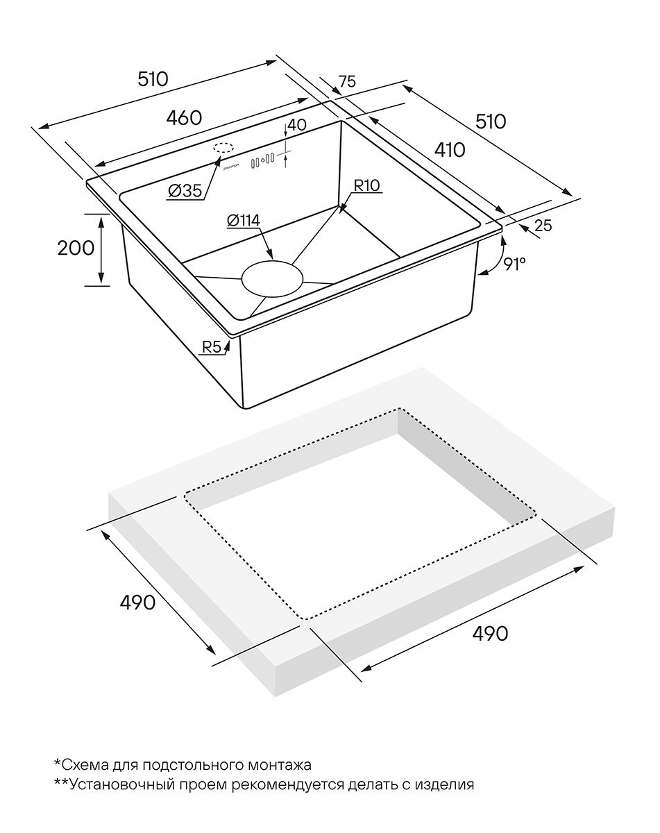 Мойки KRONER в оттенке GM имеeт прочное PVD покрытие, которое нанесено на нержавеющую сталь. Оно особенно устойчиво к появлению царапин и истиранию, не содержит микротрещин и является экологически чистым.Не подвержена деформации;
