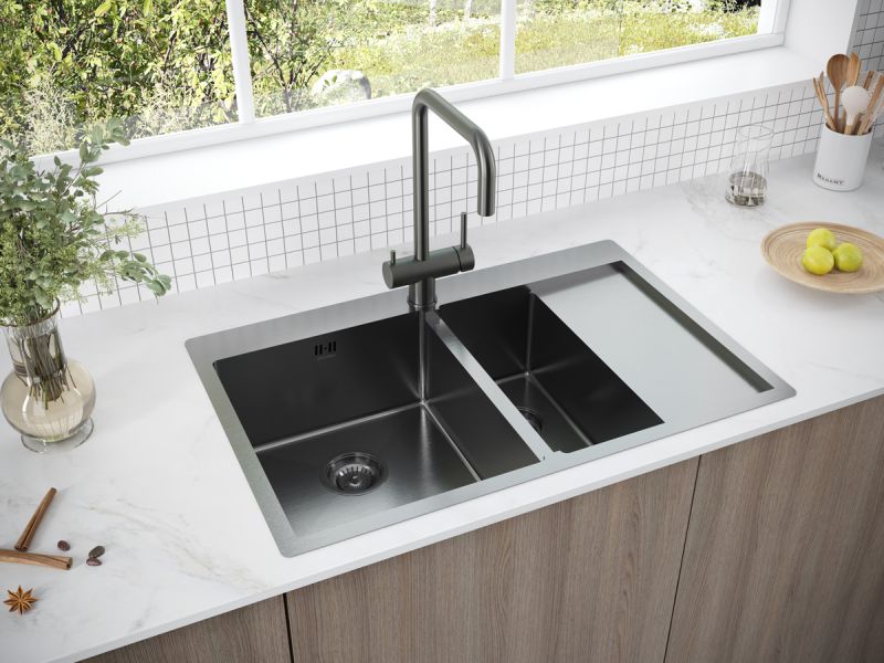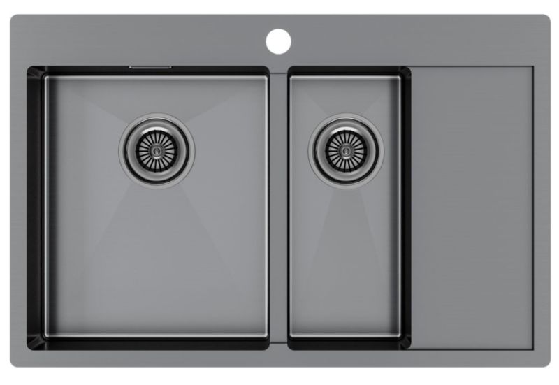 Мойки Liga в оттенке GM имеeт прочное PVD покрытие, которое нанесено на нержавеющую сталь. Оно особенно устойчиво к появлению царапин и истиранию, не содержит микротрещин и является экологически чистым.Функциональное плоское крыло; Готовое отверстие для кухонного смесителя.Имеет шумопоглощающее покрытие Stille® на внешней стороне чаши;