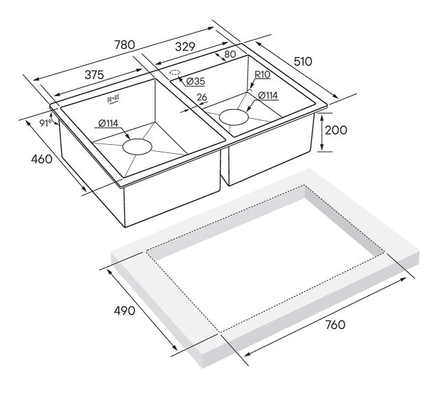 Монтаж:встраиваемая сверху