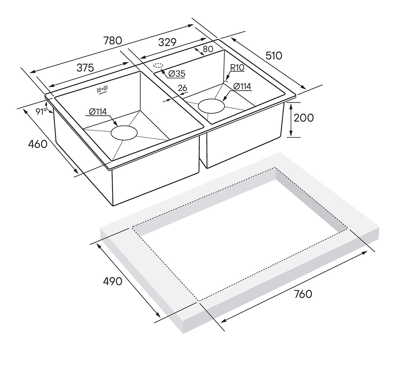 Мойка кухонная Paulmark Kroner PM237851-BS брашированная нержавеющая сталь