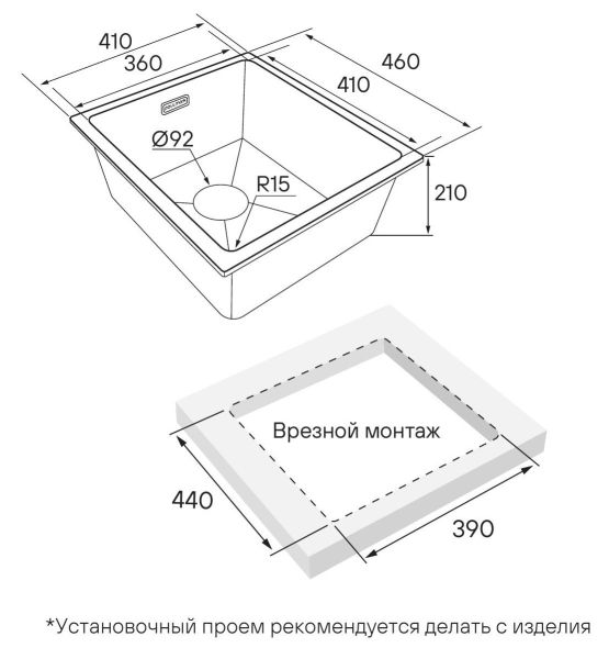 Мойка создана как для современного способа монтажа под столешницу, так и для классического врезного монтажа.Практичная эстетика