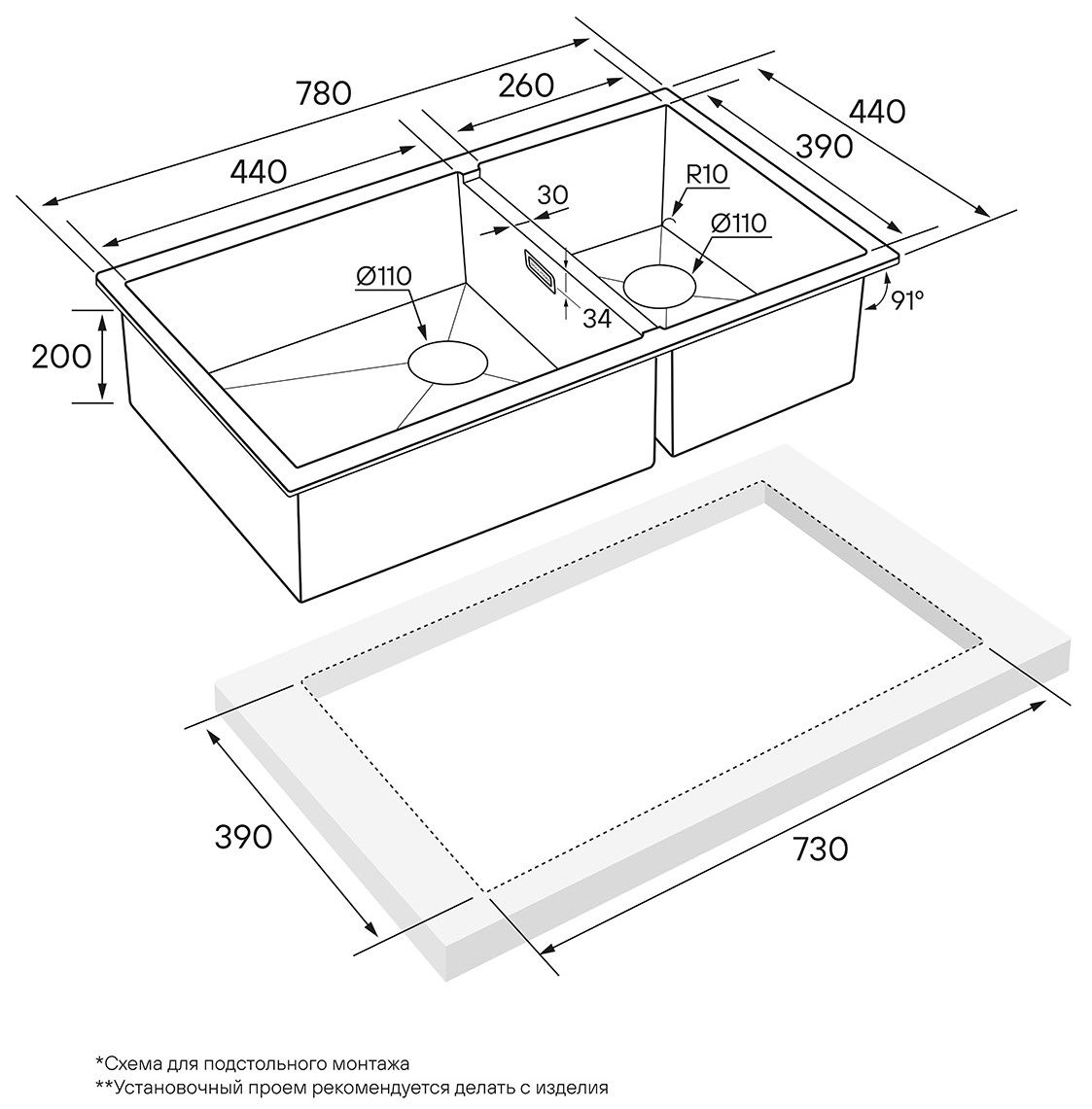 Мойка кухонная из нержавеющей стали, артикул PM527844-BS304-ая аустенитная нержавеющая сталь имеет низкое содержание углерода. В составе мойки содержится 18% хрома и 8% никеля, что делает данную мойку из нержавеющей стали не подверженной деформации и обеспечивает прекрасные эксплуатационные характеристики.Мойки OSSER в оттенках BG и GM имеют прочное PVD покрытие, которое нанесено на нержавеющую сталь. Оно особенно устойчиво к появлению царапин и истиранию, не содержит микротрещин и является экологически чистым.Имеет шумопоглощающее покрытие Stille® на внешней стороне чаши;