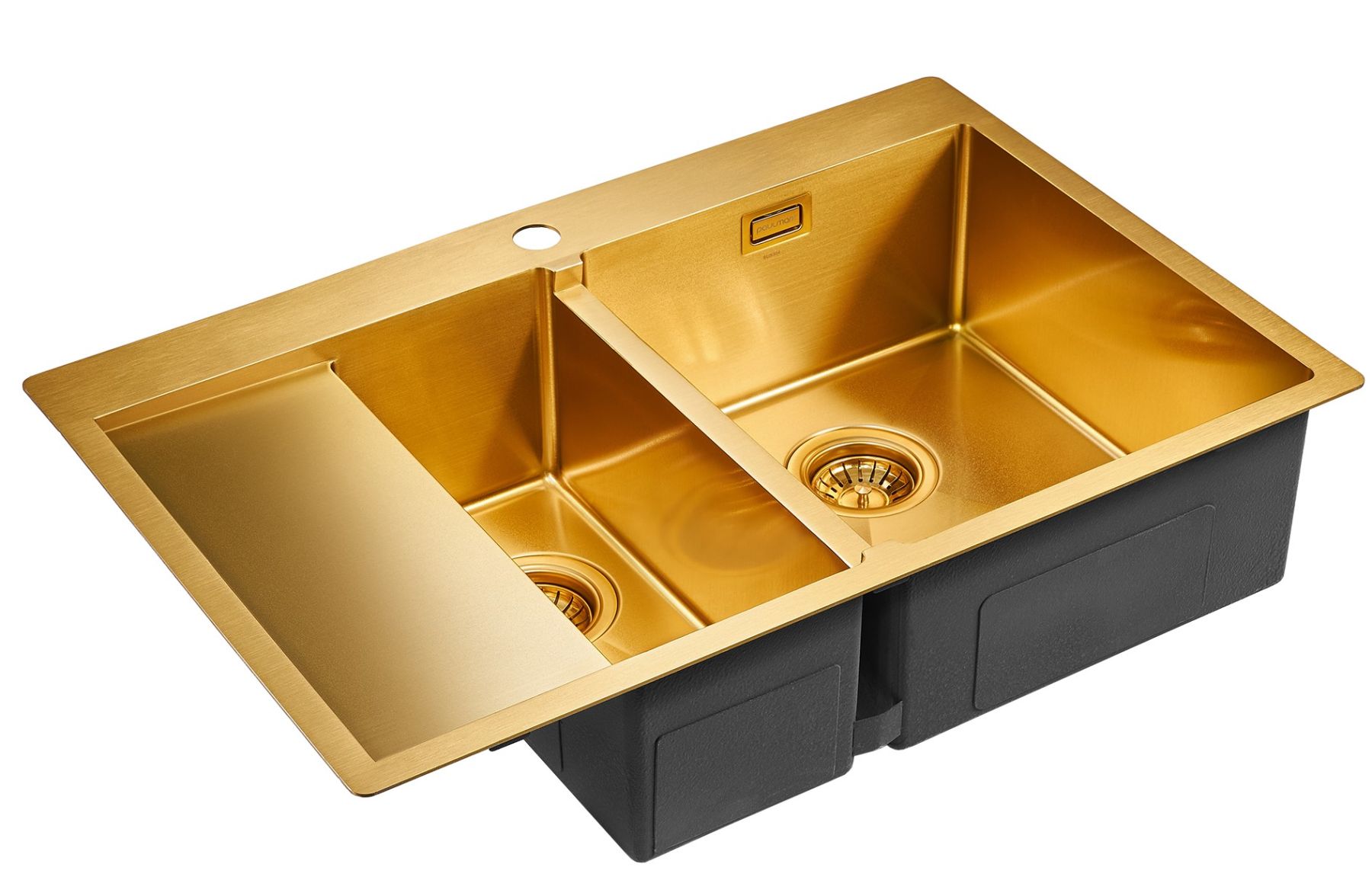 Мойка кухонная из нержавеющей стали, артикул PM537851-BGR304-ая аустенитная нержавеющая сталь имеет низкое содержание углерода. В составе мойки содержится 18% хрома и 8% никеля, что делает данную мойку из нержавеющей стали не подверженной деформации и обеспечивает прекрасные эксплуатационные характеристики.Мойки UNION в оттенках BG и GM имеют прочное PVD покрытие, которое нанесено на нержавеющую сталь. Оно особенно устойчиво к появлению царапин и истиранию, не содержит микротрещин и является экологически чистым.Имеет шумопоглощающее покрытие Stille® на внешней стороне чаши;