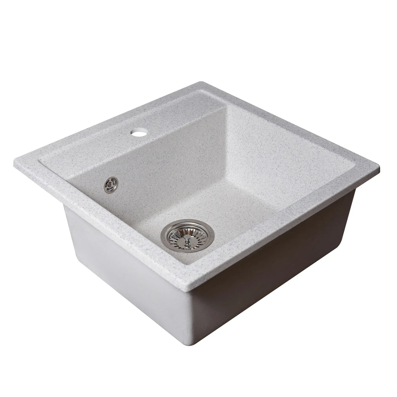 В мойке предусмотрено отверстие для установки смесителя. Используя алмазную коронку, можно сделать дополнительные отверстия для дозатора жидкого мыла или сифона с полуавтоматом.