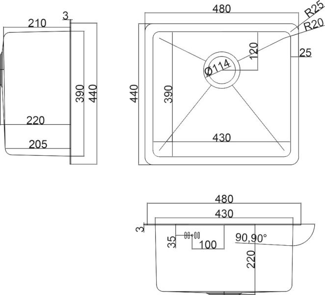 Отверстия под смеситель:нет