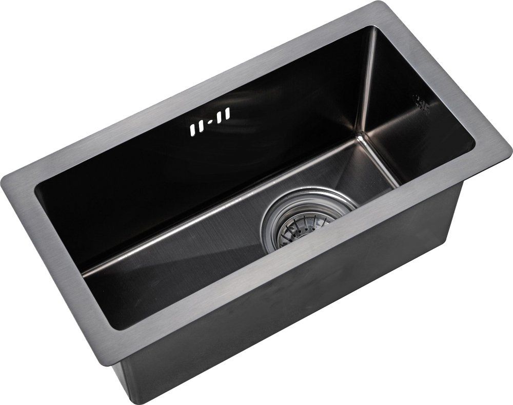 Мойка кухонная Zorg : чаша мойки выполнена из высококачественной легированной нержавеющей стали с последующей специальной PVD-обработкой в цвет графит. Данная модель прочная, устойчивая к царапинам, способна выдерживать высокие температуры. Форма: прямоугольная, цвет мойки -графит. Функционально дополнит интерьер кухни. Конструкция призвана заметно облегчить привычные дела – от мытья посуды до разморозки продуктов. Сверху нанесено покрытие, которое придает глубокий цвет и обеспечивает защиту от преждевременного истирания. Толщина нержавеющей стали 1,5–3 мм и шумоподавляющие накладки делают модель практически бесшумной.