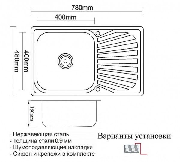 Мойка кухонная Zorg : чаша мойки выполнена из высококачественной легированной нержавеющей стали с последующей специальной PVD-обработкой в цвет графит. Данная модель прочная, устойчивая к царапинам, способна выдерживать высокие температуры. Функционально дополнит интерьер кухни. Конструкция призвана заметно облегчить привычные дела – от мытья посуды до разморозки продуктов. Сверху нанесено покрытие, которое придает глубокий цвет и обеспечивает защиту от преждевременного истирания. Толщина нержавеющей стали 1,5–3 мм и шумоподавляющие накладки делают модель практически бесшумной.