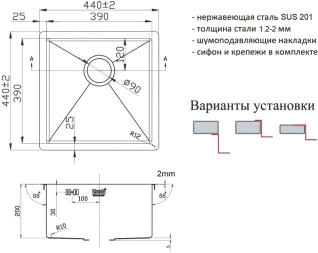 Мойка кухонная Zorg Light ZL R 440440 купить