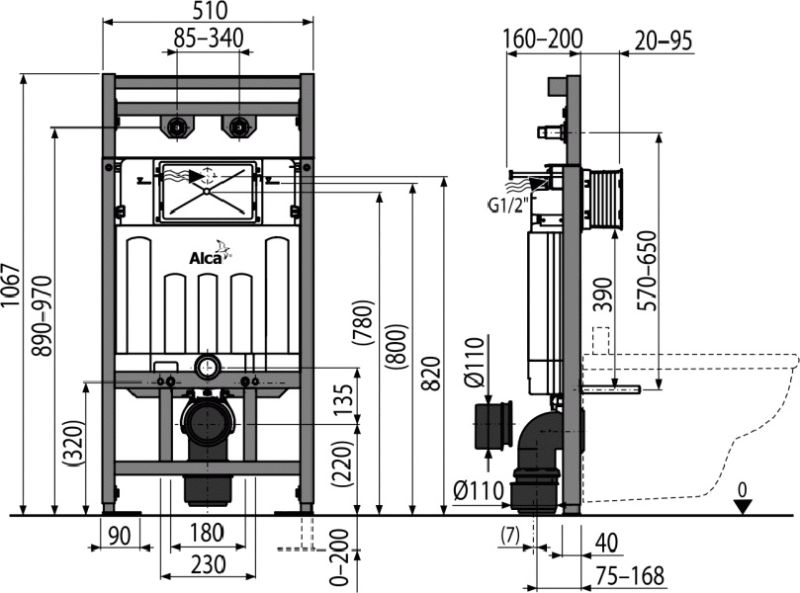 - Для подвесных чаш с интервалом крепления до 420 мм и стоковым коленом Ø90/110