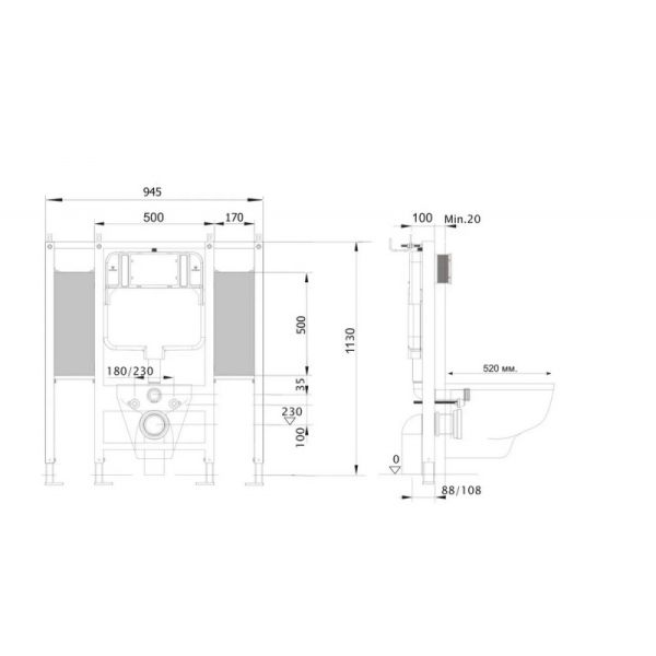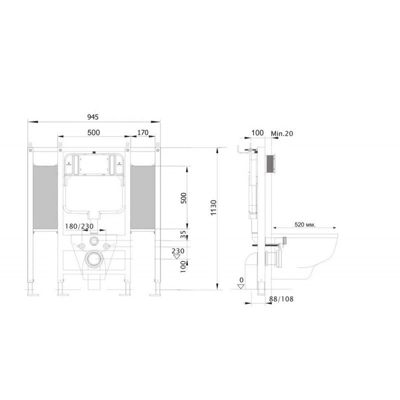 Инсталляция для подвесного унитаза Aquatek для лиц с ограниченными возможностями, INS-0000015Инсталляция для подвесного унитаза для лиц с ограниченными возможностями, с возможностью установки поручней и опор