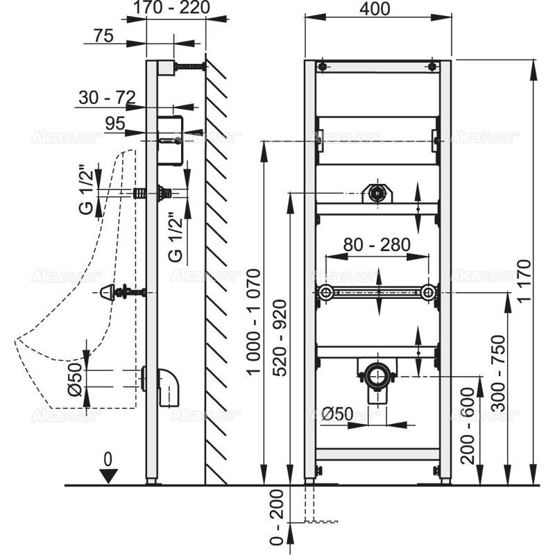 Монтажная рама для писсуара и сенсорного устройства AlcaPlast A107S/1200