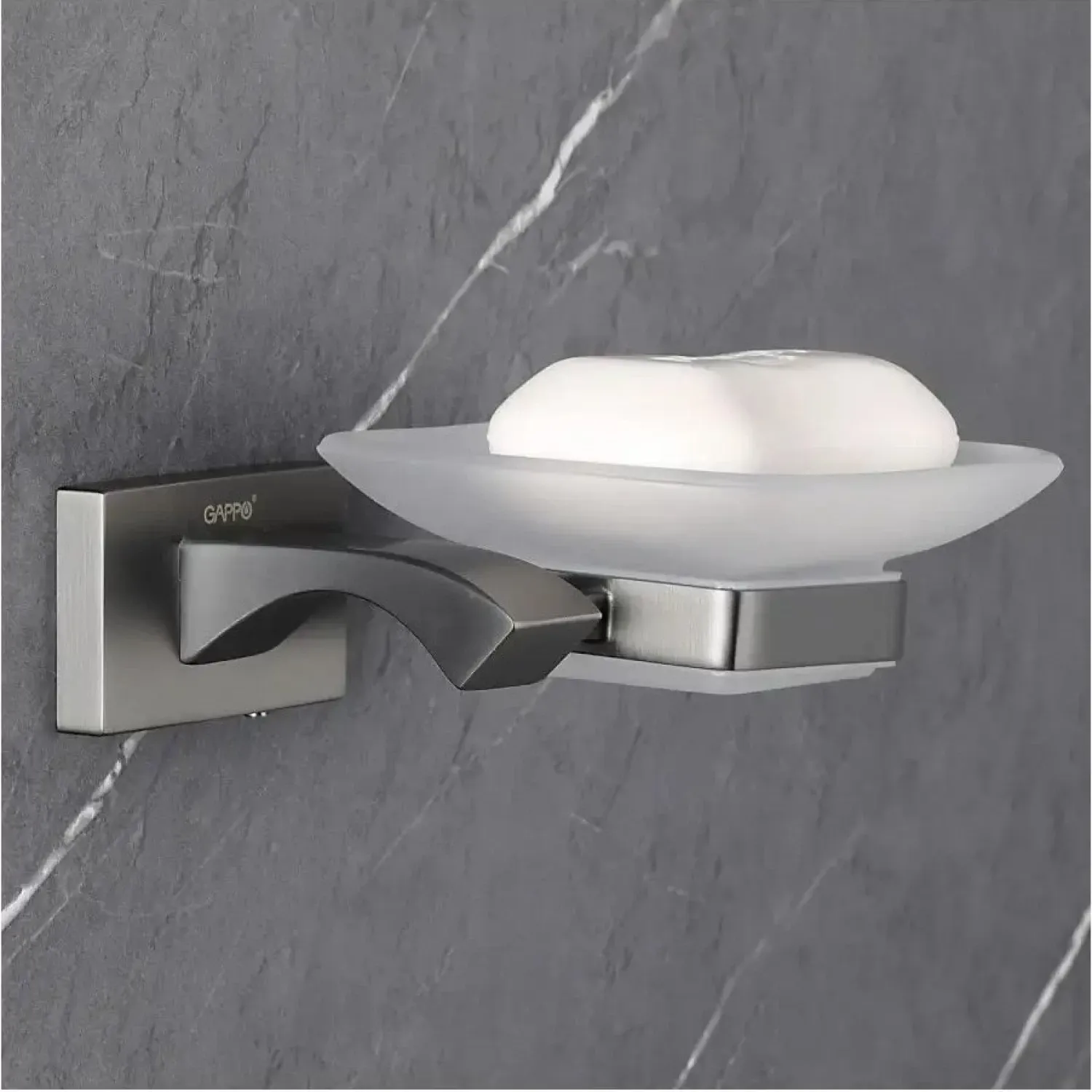 Мыльница Gappo G0702-9 изготовлена из стекла, держатель из латуни, в цвете оружейная сталь. Мыльница G0702-9 – изящный и практичный аксессуар для ванной комнаты. Мыльница подвесная, крепится к стене около раковины или умывальника, подходит для стандартного куска твердого мыла. Предназначена для хранения мыла, а также выполняет декоративную функцию в ванных комнатах.