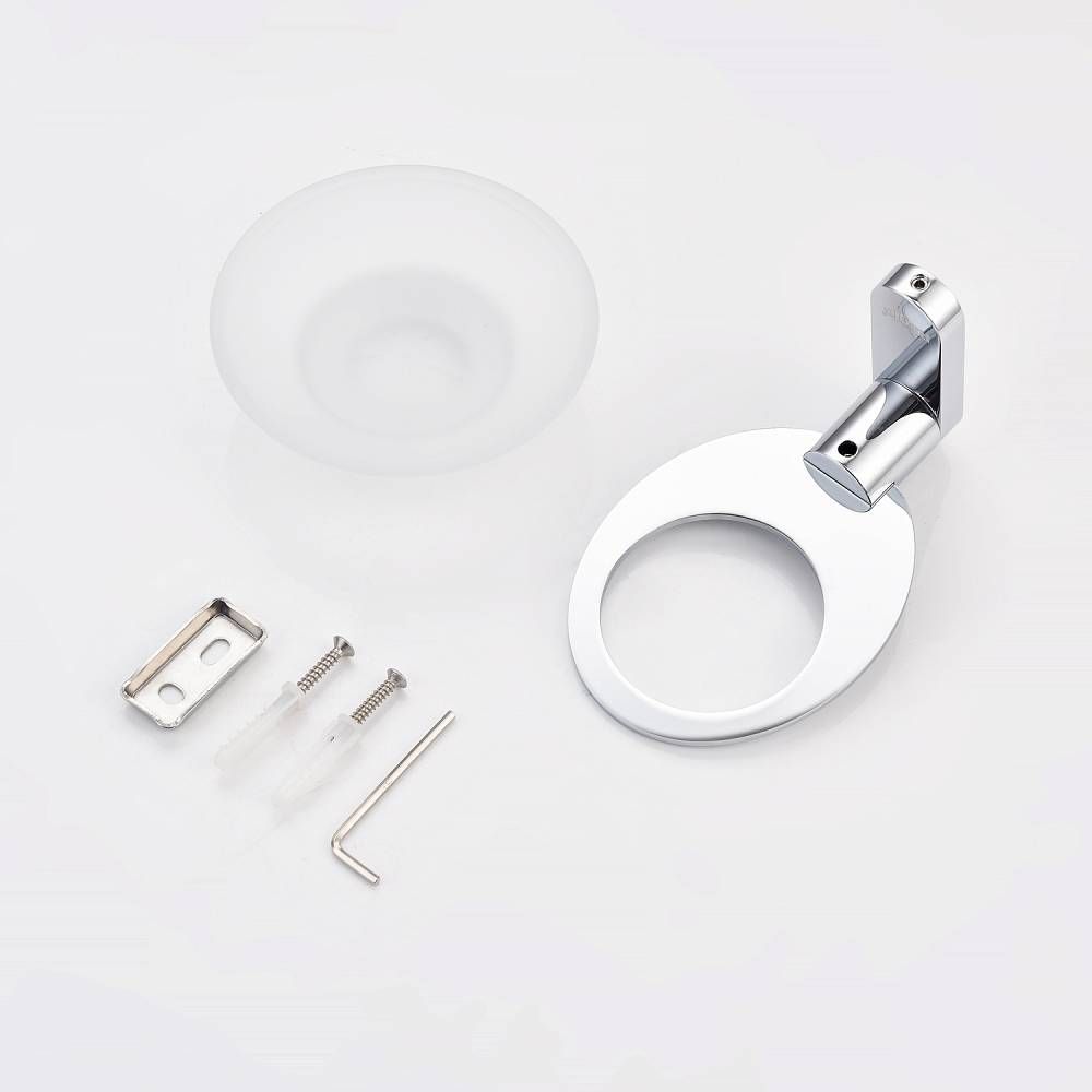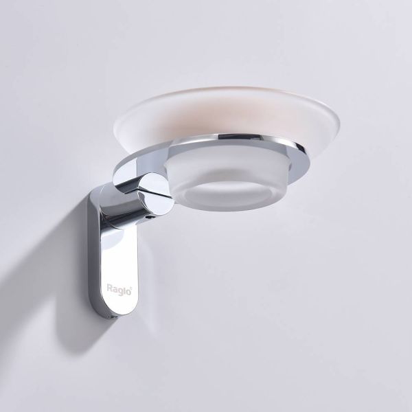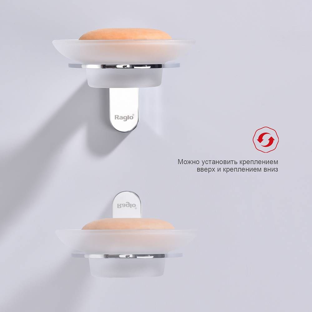 Raglo R300.02 Мыльница стеклянная с держателем. Форма округлая, цвет - хром. Крепление в комплекте.