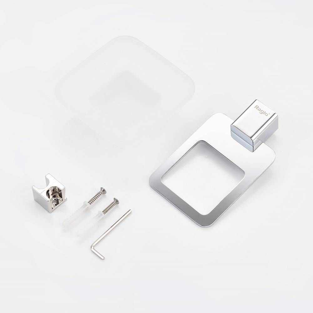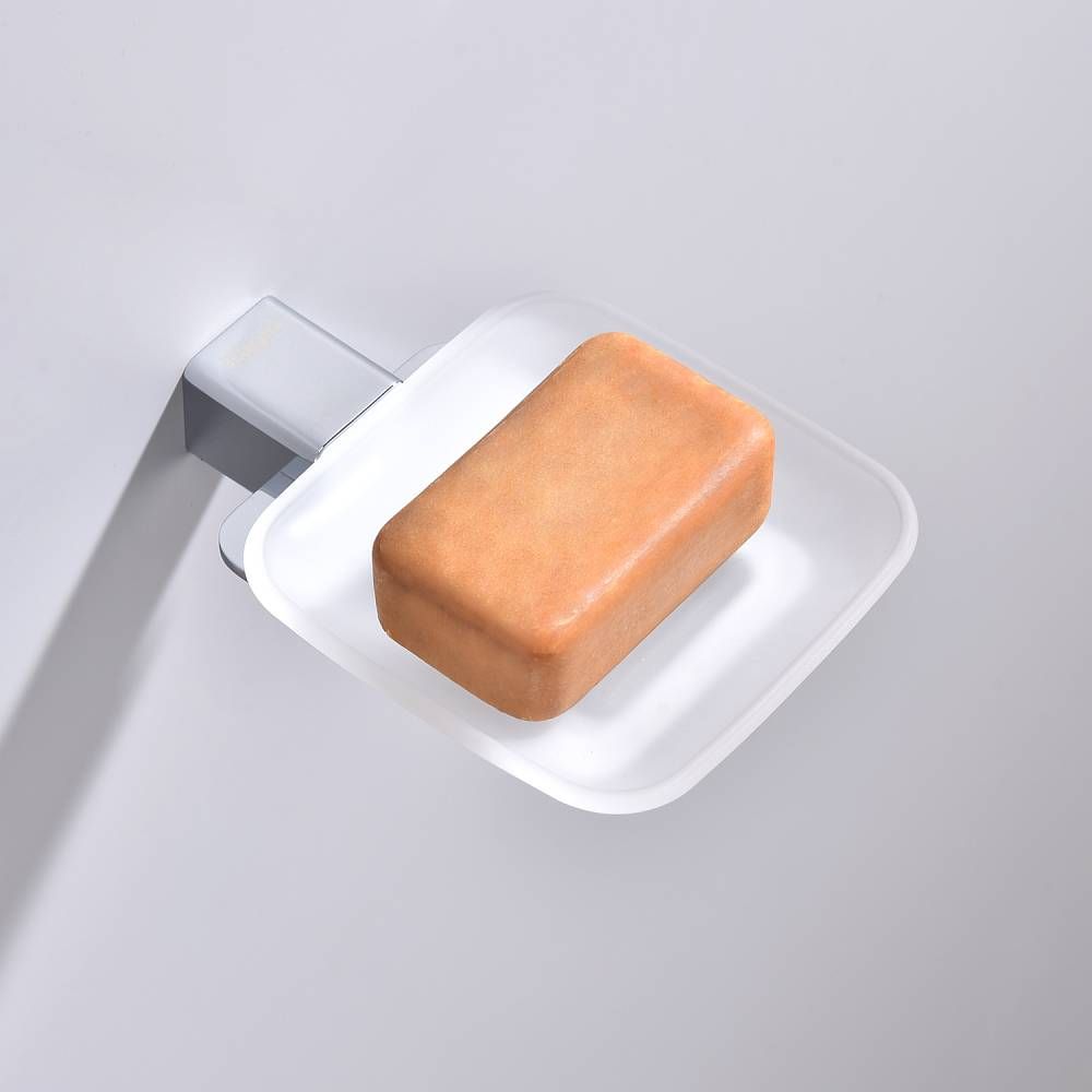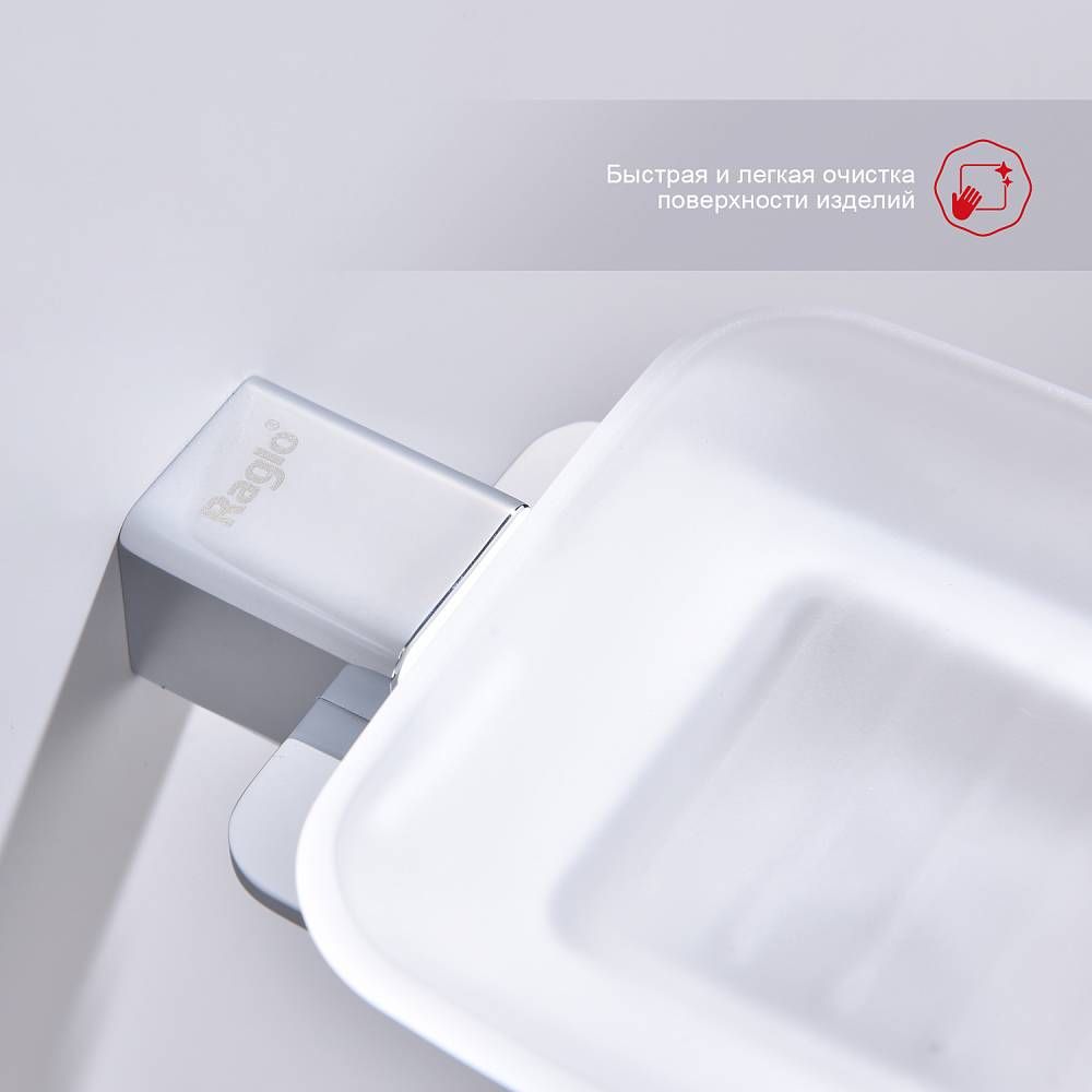 Raglo R301.02 Мыльница стеклянная с держателем. Форма квадратная, цвет - хром, глянцевое покрытие. Крепление в комплекте.