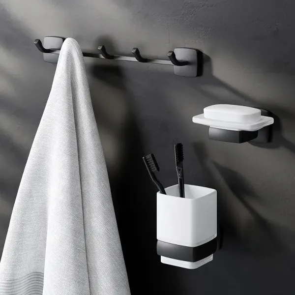 Набор аксессуаров для ванной AM.PM Gem AK90B1903B черныйОткройте для себя стиль и функциональность с набором аксессуаров для ванной AM.PM Gem AK90B1903B. Этот современный набор идеально подходит для создания гармоничного и элегантного интерьера. Сочетая в себе эстетически привлекательный черный матовый цвет и высококачественные материалы, такие как цинк и стекло, данный набор аксессуаров станет незаменимым элементом вашей ванной комнаты.