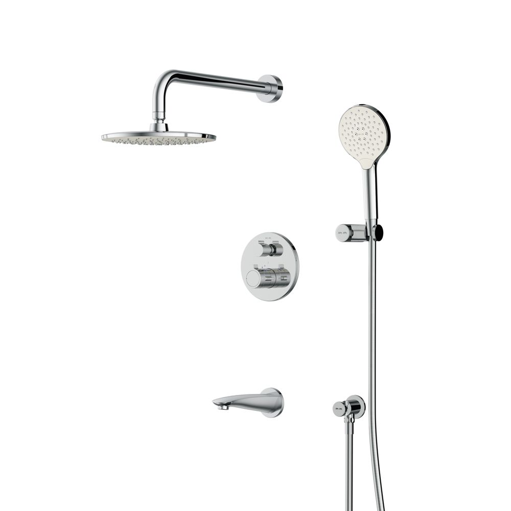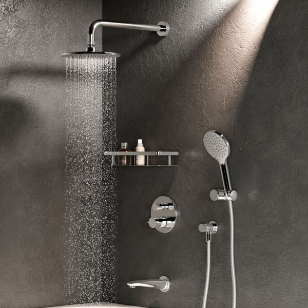 Коллекция X-Joy включает в себя по-настоящему дизайнерские продукты в своем ценовом сегменте. Разработанные дизайн-агентством GP designpartners из Австрии они завоевали любовь многих покупателей.Набор встроенного оборудования X-Joy - идеальное решение для вашей ванной комнаты. Встроенный механизм освобождает ванную комнату от лишних деталей превращая пространство в идеальное место для себя. Набор включает в себя: верхний тропический душ 22 см ручной душ держатель ручного душа и смеситель.Высокопроизводительный Коаксиальный картридж с термостатом включающий высокочувствительный термоэлемент обладает быстрой реакцией на изменения температуры или давления в водопроводной сети защищает от ожога даже при внезапном отключении холодной воды.Удобные ручки управления потоком и температурой воды расположены на одном уровне что позволяет менять режимы легко и просто.Покрытие Everlast – вдвое превышает отраслевые стандарты по прочности и износостойкости. Ювелирный блеск и прочность покрытия достигаются по стандарту Chrome plating standard NSS 80H. Отдельная гарантия на корпус и покрытие – 10 лет в два раза больше чем принято по европейским стандартам.Заказ, консультации, рекомендации