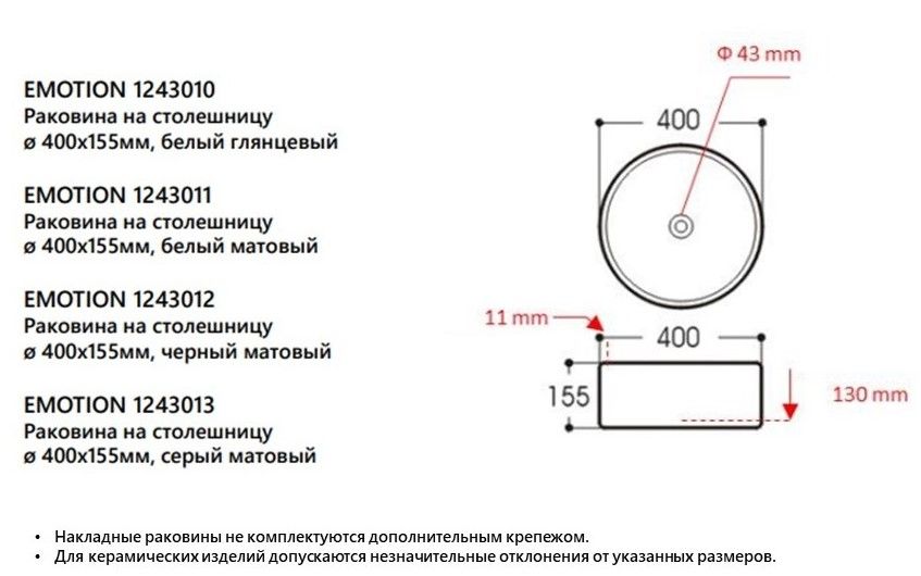 Накладная раковина Avimano Emotion 1243011 40см белый матовый