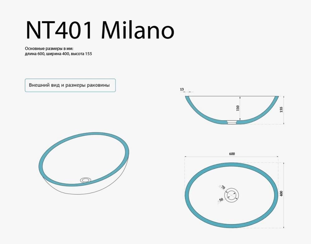 Накладная раковина NT Bagno Milano NT401 60см белый матовый